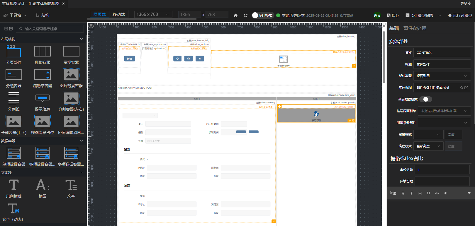- 视图面板模型的复用与集成:直接导入iBizOdoo的标准化视图面板模型,复用其成熟的布局、样式与交互逻辑。这不仅大幅减少了前端重复开发工作量,更确保了系统整体风格与交互模式的一致性,为用户提供熟悉且流畅的操作体验。